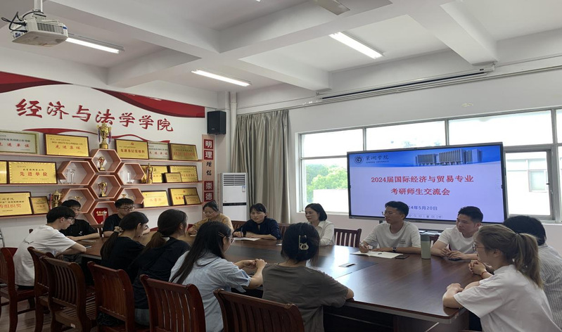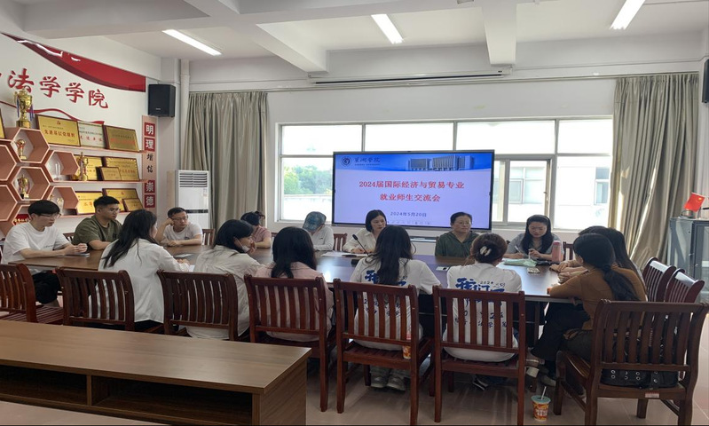 2024年5月20日下午,经法学院经贸系在求实楼三楼会议室分别召开考研和就业师生交流会,参加座谈会的有2020级国贸专业毕业生代表和经贸系教师代表。