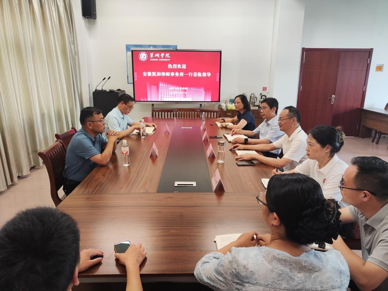 6月17日下午,安徽凯和律师事务所合伙人张先庭律师、吴凯律师一行来经法学院调研交流。经法学院党委书记石庭、副院长施玮、副书记解雪梅以及教师代表参会,会议由副院长施玮主持。