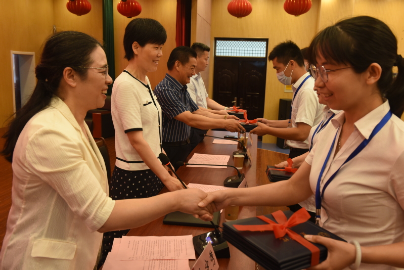 最后,主席台领导共同为毕业生代表颁发毕业证书。