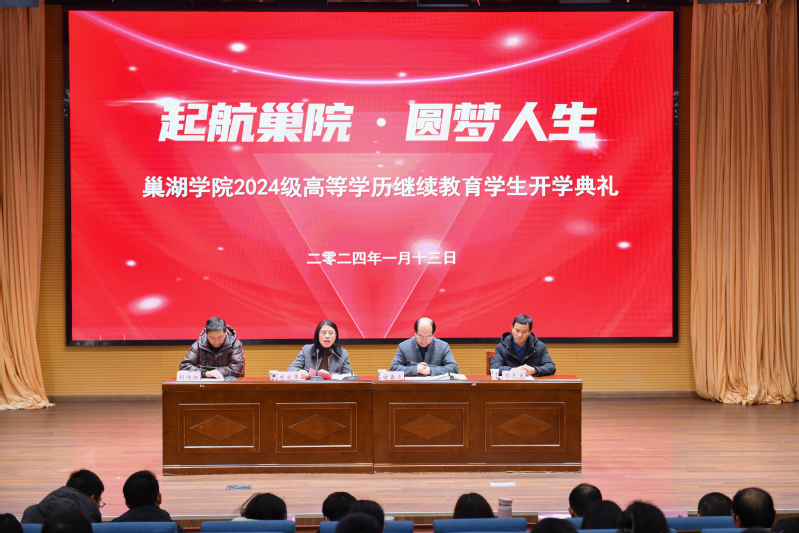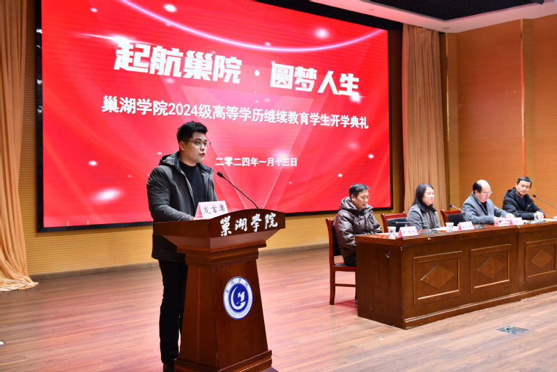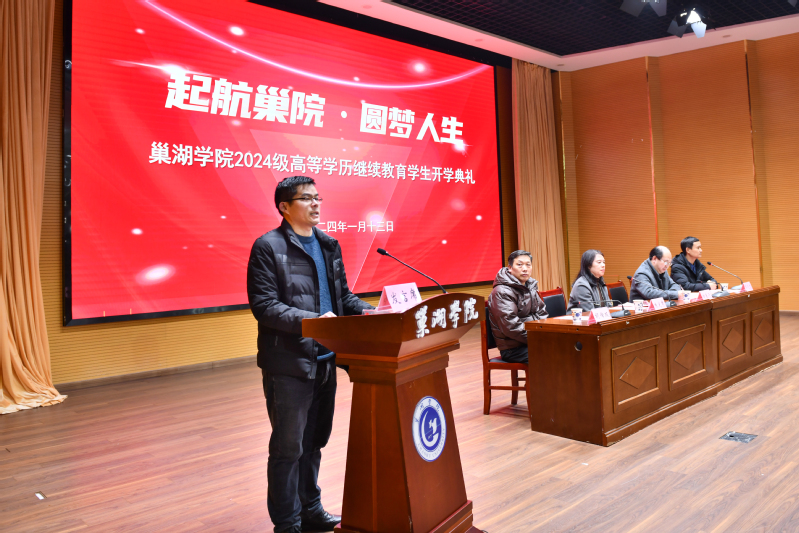 1月13日上午,巢湖学院高等学历继续教育2024级新生开学典礼在求实楼报告厅举行。校党委委员、副校长朱定秀,教务处副处长胡传双、相关教学学院领导及班主任,国际交流与继续教育学院工作人员和2024级新生参加了典礼。典礼由国际交流与继续教育学院副院长齐先文主持。
