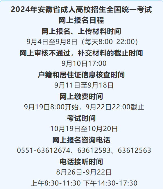 安徽省教育招生考试院《2024年安徽省成人高校招生考试报名公告》网址: