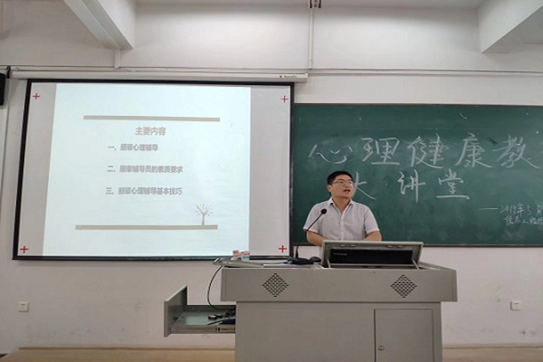 为让更多学生了解心理健康知识,5月22日中午12点,信息工程学院于慎思楼中102教室举行了心理健康教育大讲堂活动,心理健康中心任课老师刘旭担任了本次讲堂活动的主讲人。活动伊始,刘旭分别就朋辈心理辅导、朋辈心理辅导员的素质要求、朋辈心理辅导技巧这三方面进行了详细的阐述。在讲述过程中,他列举具体事例进行介绍,同时也进行了现场提问,让同学们更深刻地了解了心理健康知识,同学们积极与老师进行互动。此次讲座圆满开展,不仅帮助同学们提升心理健康意识和丰富心理情感生活,还让同学们收获到了心理知识和心理调适方法,更好地提高了同学们之间的沟通意识和技巧,对和谐人际关系有良好的促进作用。