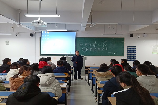 【校友报告会】12月20日下午,信息工程学院在慎思楼中101举办了优秀校友报告会。1995届校友、安徽拜思特信息工程有限公司总经理于明思应邀为同学们作报告,应邀为同学们作报告。学院党委书记陈士群参加会议,报告会由学院团总支书记刘小燕主持,学院各班级优秀学生代表参加报告会。