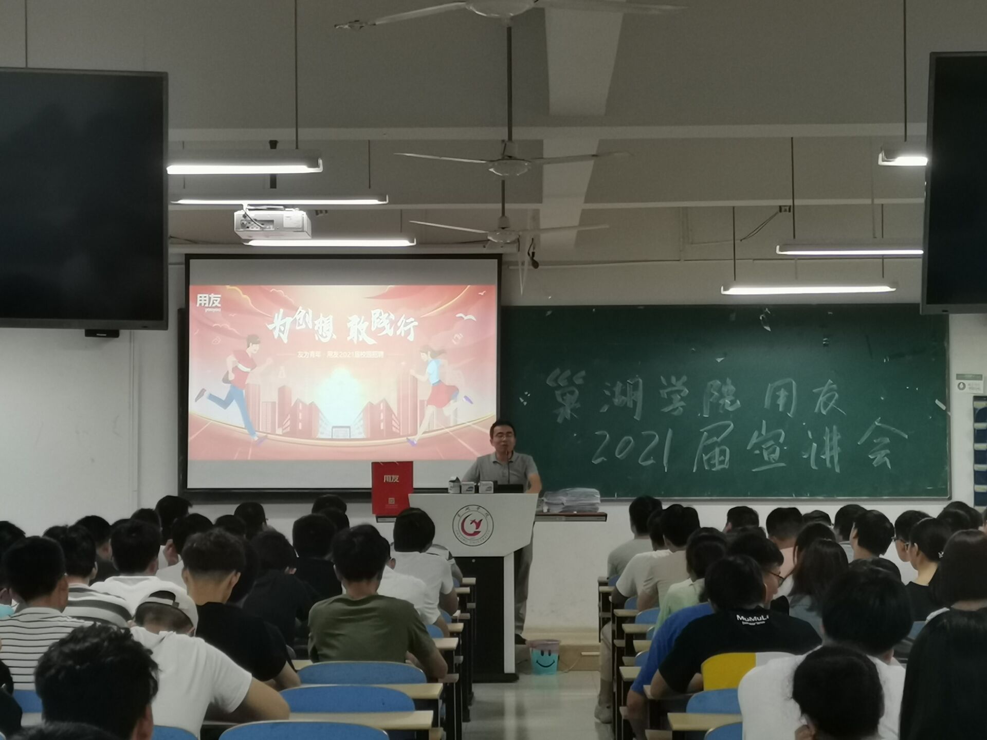 为全力推进疫情防控常态下的就业工作,搭建用人单位和广大毕业生之间高效、规范的双选平台,为毕业生提供高效优质的就业信息服务,切实提高学院就业率和就业质量,9月9日下午2点30分,awc777万象城娱乐官网大学生就业指导中心联合信息工程学院在慎思楼中201举办2021届毕业生校园秋季招聘宣讲会。参与本次招聘宣讲会的有安徽用友软件有限公司、安徽前锦空间信息科技有限公司等大型知名企业。校党委委员、信息工程学院院长郑尚志莅临会场,信息工程学院就业联络员梁腾飞负责现场组织本次活动。