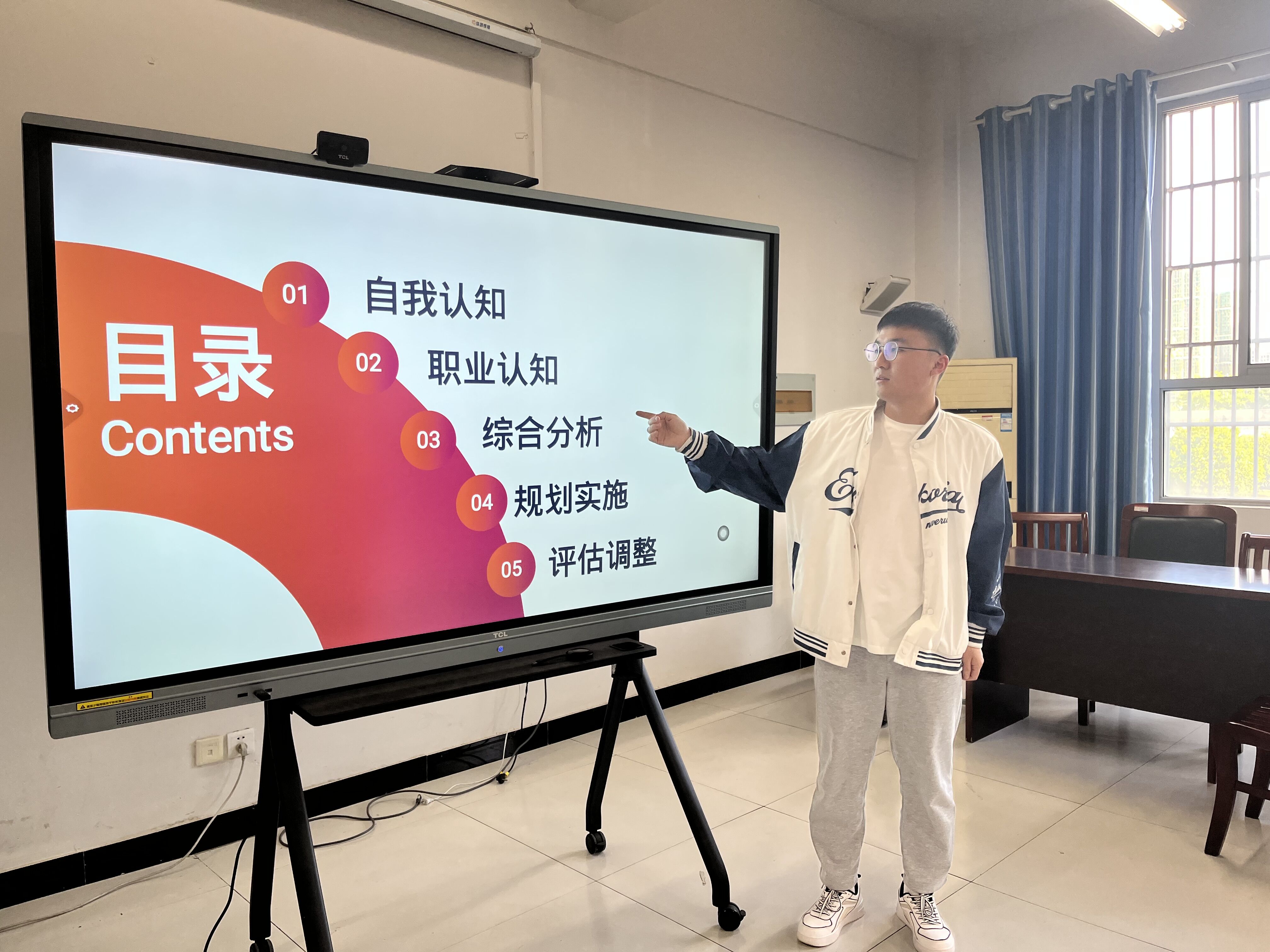 经过前期的初选,共10位同学参加了此次比赛,比赛分为PPT演示、职业角色情景模拟及《职业生涯规划设计书》三部分,10位选手依次上台,通过PPT汇报的形式对自己的职业生涯规划进行了展示,从自我认知、职业生涯环境分析、职业目标及路径设计、调整方案和规划总结等方面进行了分析。选手紧密结合专业,既展现了作为工科生的敢于创新和精益求精,又能联系时代将科技技术强国和个人理想相结合,选手们的表现十分精彩,最终张朝科、马梦奇、朱伟民分获前3名,将代表学院参加校赛。