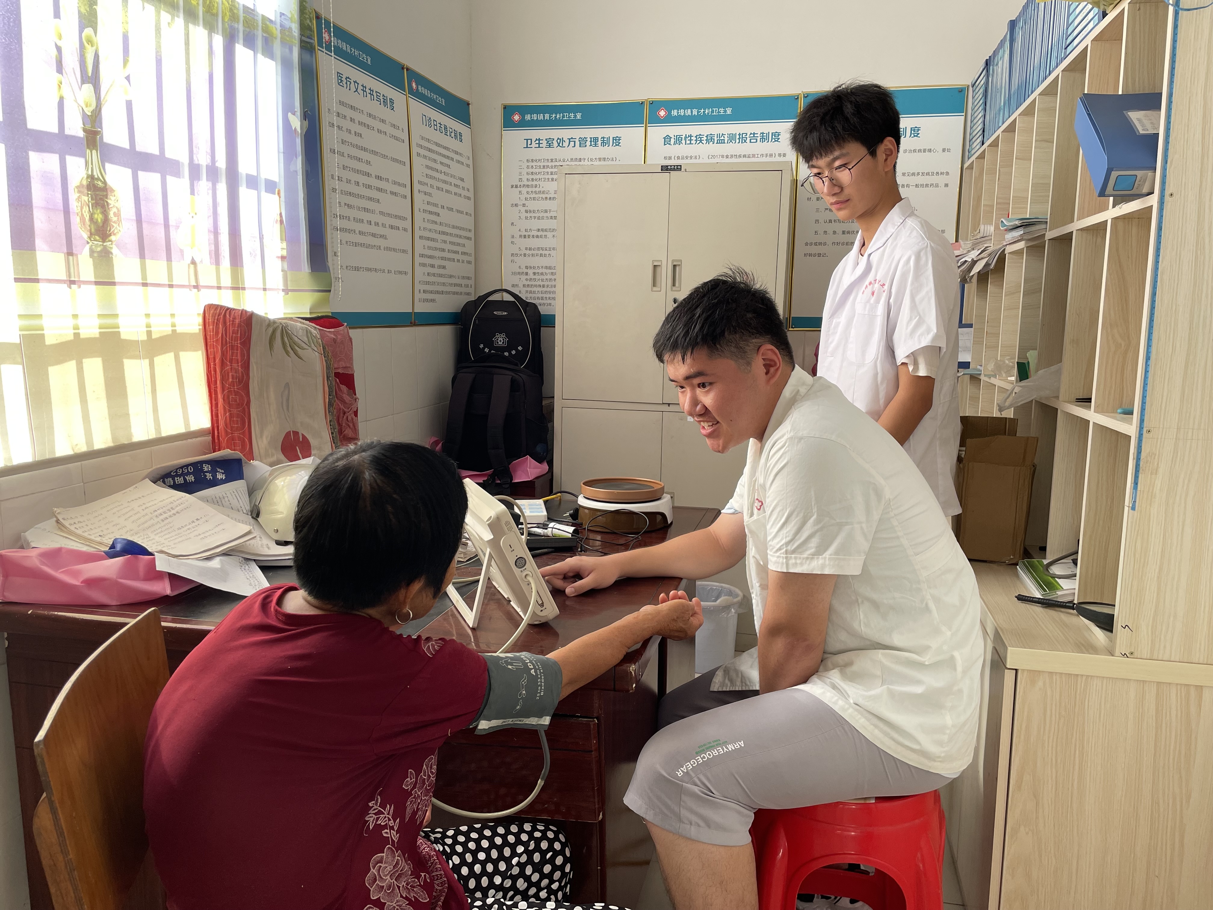 实践活动开展前,队长张庭玉向团队成员介绍本次活动的相关事宜,并和育才村当地卫生所进行沟通,共同商量活动的具体事宜。随后,团队成员在乡村医生的指导下在村内卫生所为村民测量血压。同时,团队成员对于一些血压偏高的老人,耐心为老人说明日常注意事项。