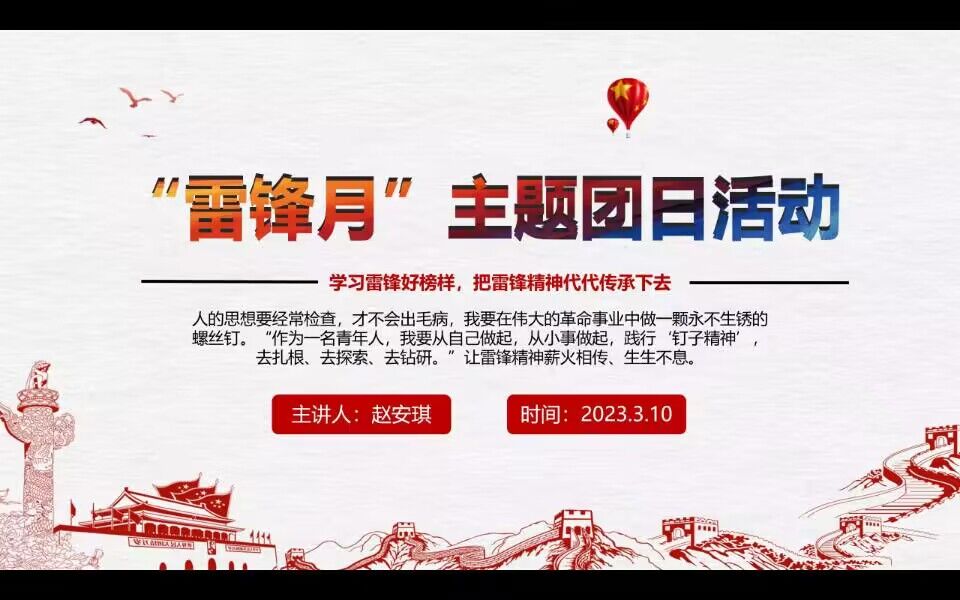 团会上,各支部团支书详细介绍了雷锋同志的生平事迹、雷锋精神的具体内容和实质,并结合切身体会和亲身经历,将雷锋精神的时代意义与现实意义传达给每一位团员。