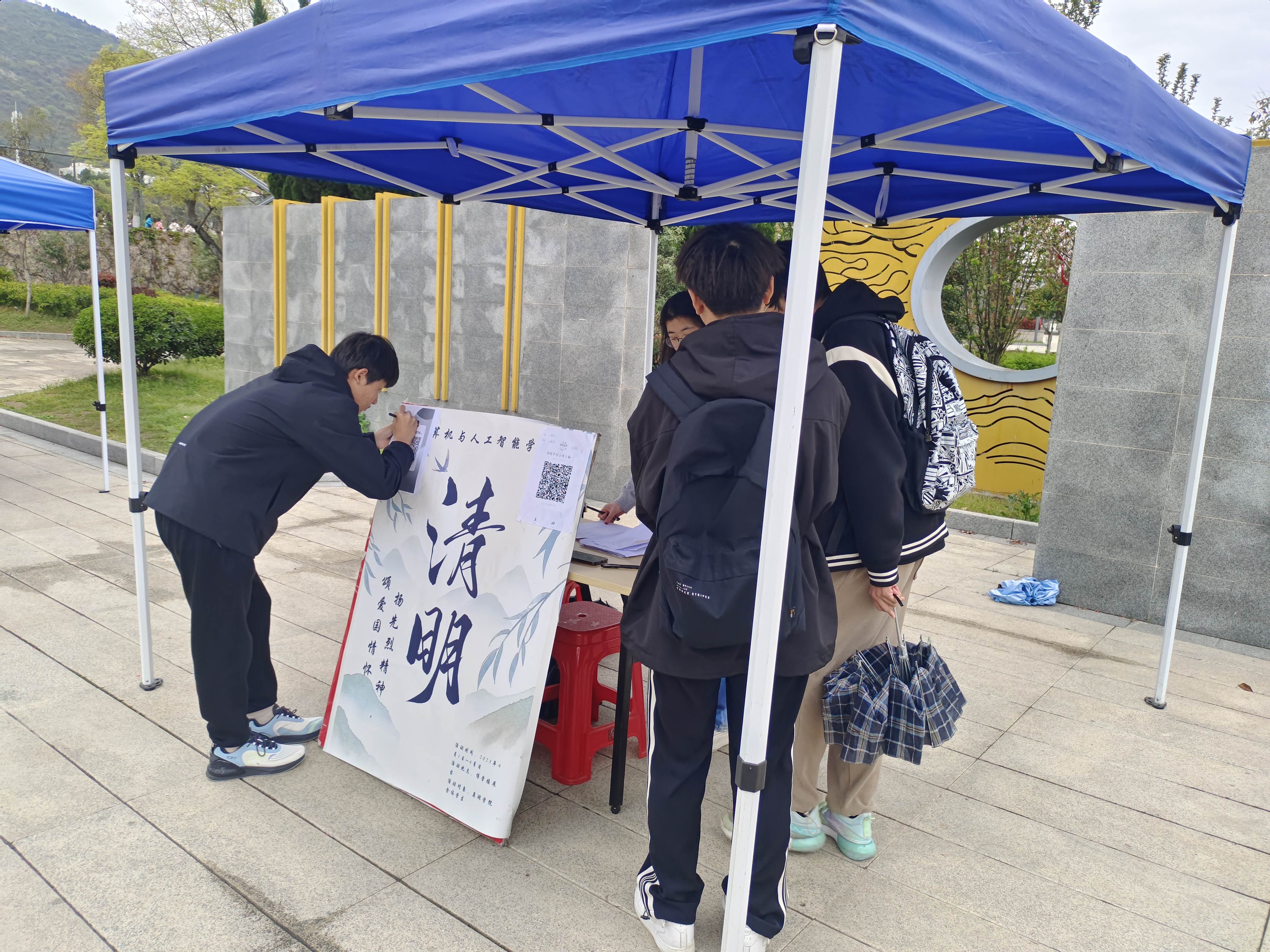 本次清明节线上缅怀活动以两种活动形式带同学们回顾历史,重温历史,缅怀烈士。活动一:出谋画策。为向伟大的革命烈士致敬、铭记逝去的先烈,参赛选手需设计出缅怀先烈的海报或者画出烈士纪念碑。活动二:诗以言志。一心中国梦,万古下泉诗,参赛选手手写100字左右的诗歌来表达我们对无数革命烈士的思念和缅怀。活动开展期间,同学们纷纷前往展台积极报名参加,上交自己的作品表达自己对先烈的敬畏之心,经评委审核后挑选出的优秀作品可获得丰厚活动奖品。此次活动弘扬爱国主义精神,教育同学们珍惜今天的幸福生活并继承先烈的遗志,发扬革命传统,提高同学们的爱国主义使命感。