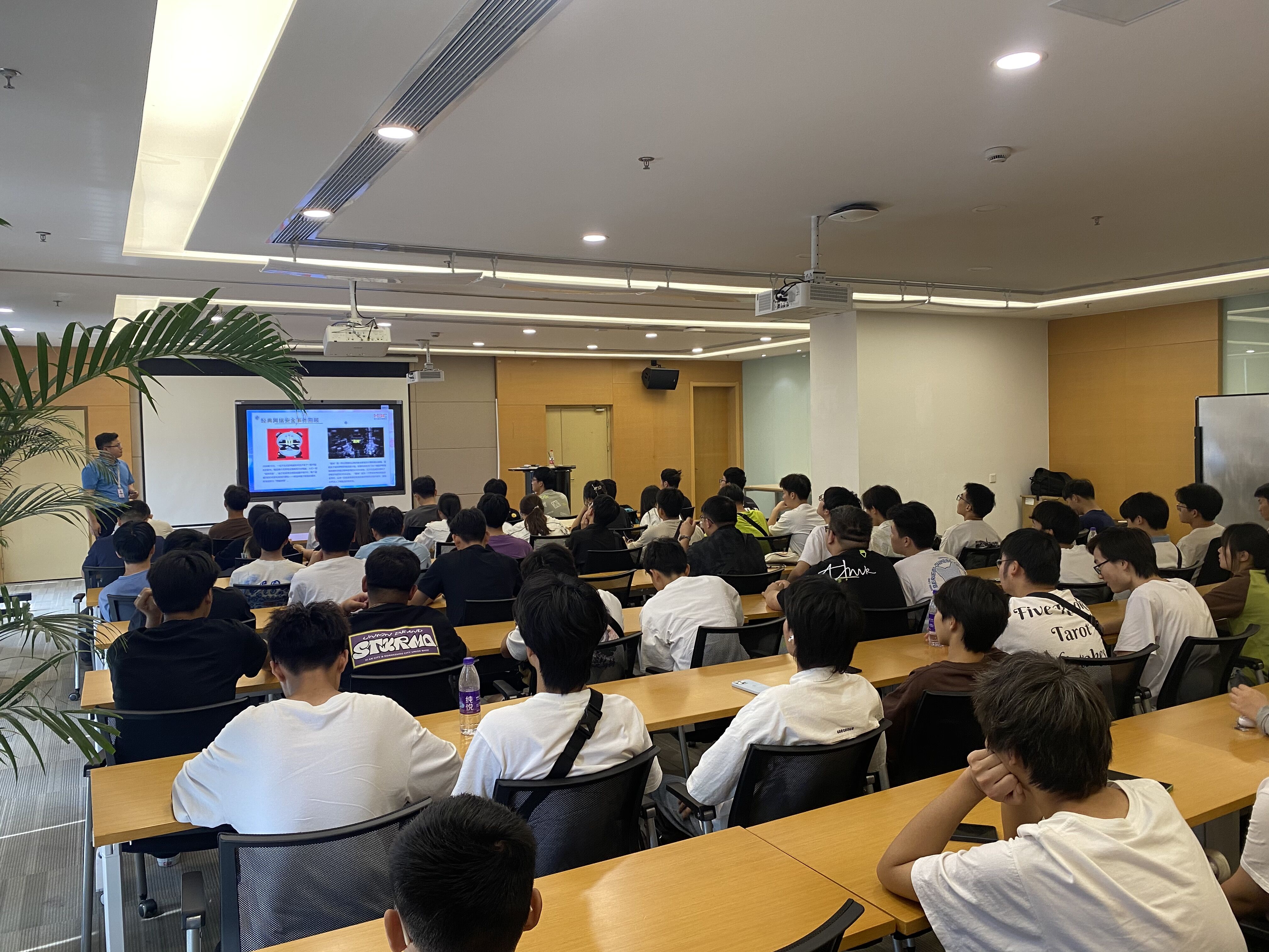 在公司智慧教室,公司老师向同学们讲解了网络安全的重要性、介绍了当前网络工程专业发展状况、分享了未来就业前景及方向,并对大家就感兴趣的问题进行了答疑和交流。