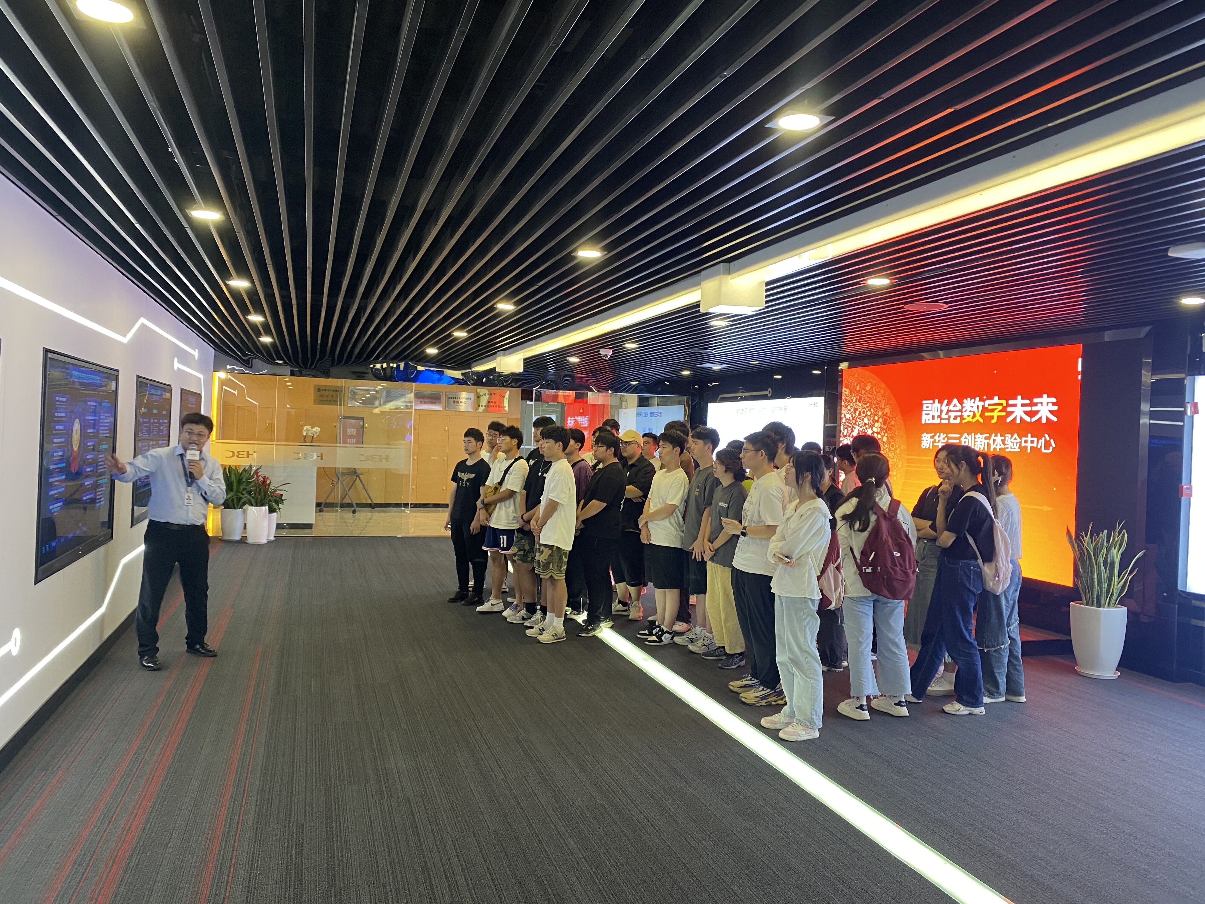 在公司智慧展厅,企业安排了专门的讲解员为同学们讲解了公司文化,介绍了公司产品以及公安网络与信息安全等领域的创新应用。