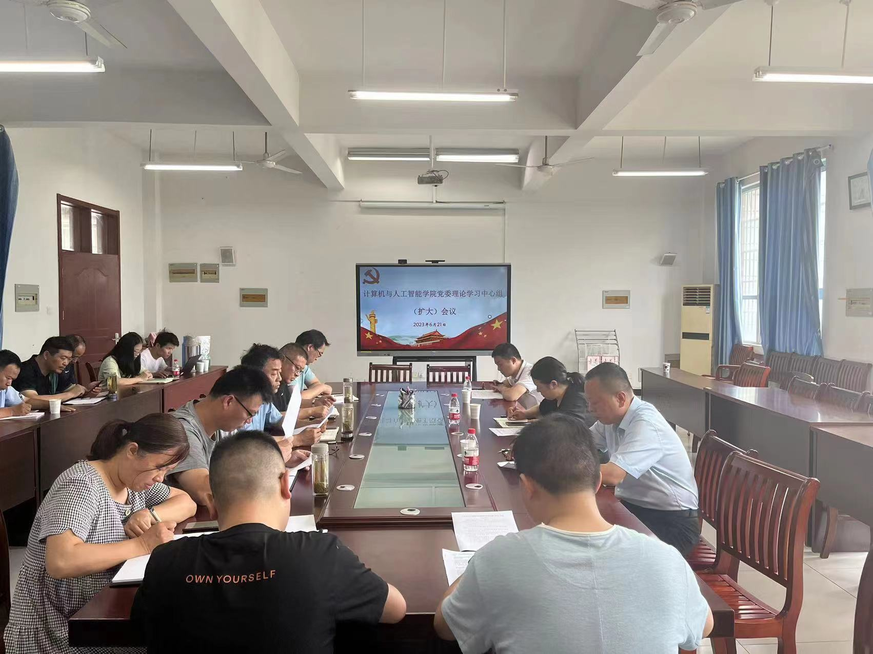 6月21日上午,计算机与人工智能学院在慎思楼南一楼院会议室召开党委中心组理论学习(扩大)会议,校党委委员、副校长朱定秀莅会指导,工商管理学院党委书记管超、党务行政秘书刘国列席会议。学院班子成员、党委委员、党支部书记、科级干部参加学习会议,会议由院党委书记王光富主持。
