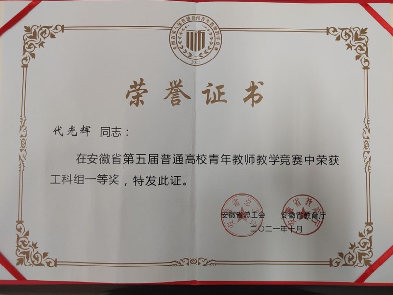 近年来学生在各类大学生学科和技能竞赛频频获奖,获得国际级奖项1项、国家级奖项17项、省级奖项59项。学生先后主持国家级大学生创新创业项目26项,省级大学生创新创业项目35项,“皖维科技创新孵化基金”项目16项;学生申报并获批专利100余项;学生参与教师各级各类教科研项目8项,并取得了阶段性成果,学生以第一作者发表学术论文13篇。