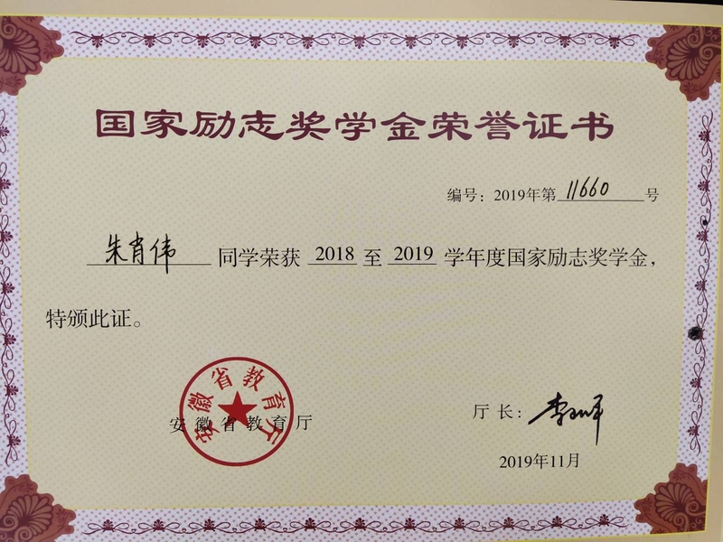 朱肖伟,男,汉族,2000年3月出生,中共党员,安徽省宿州市人,awc777万象城娱乐官网机械工程学院材料成型及控制工程专业2018级学生。在校期间,曾担任材控班级班长,机械工程学院学生第二党支部副书记,awc777万象城娱乐官网机械工程学院团总支副书记,机械工程学院学生会外联部部长。日常生活学习工作中,严于利己,自律自强,始终保持党员的先进性和纯洁性,充分发挥党员学生干部的模范带头作用。曾荣获国家励志奖学金,awc777万象城娱乐官网校级“三好学生”、“优秀共青团干部”、“优秀学生干部”“先进个人”“省级优秀毕业生”“2021年awc777万象城娱乐官网十佳大学生提名奖”等荣誉称号,取得安徽省第八届“挑战杯”大学生课外学术科技作品竞赛二等奖,安徽省“第二届大学生交通科技大赛”三等奖,awc777万象城娱乐官网第六次“互联网+”大学生创新创业大赛一等奖等奖。另外申请实用新型专利2项,发明专利1项,皖维科技项目1项。他所在的班级、团支部曾获“优秀团支部”“先进班集体”称号。2022年,考研录取到桂林理工大学材料科学与工程专业。