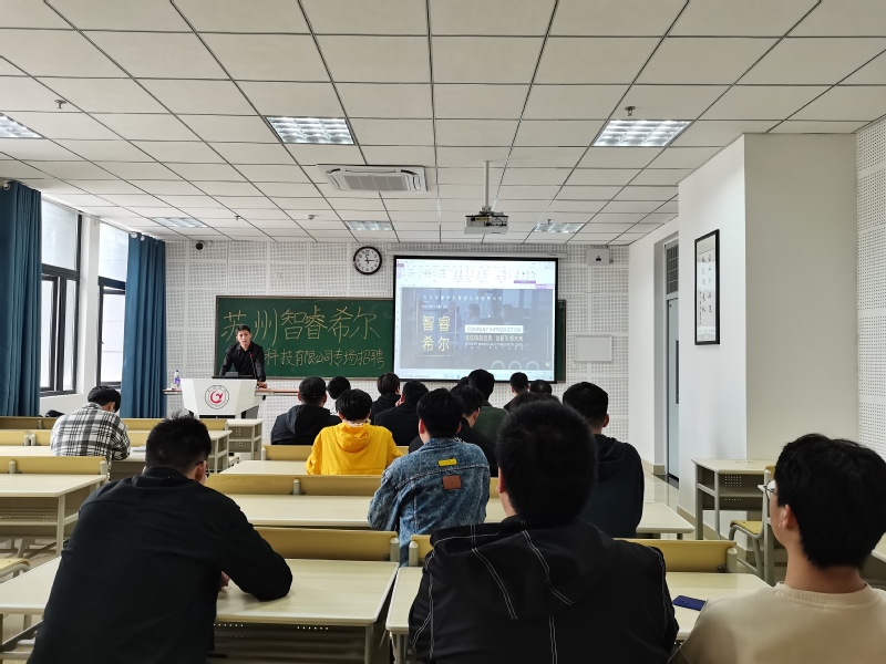 智睿希尔智能科技有限公司人事专员王明明向大家介绍了公司概况、员工风采和招聘需求。本次招聘以技术类人员为主,主要为:机械装配技术员、机械装调工程师等,学历要求为本科应届。王明明详细介绍了公司的薪酬福利制度。并与参会学生互动,解答学生所提出的关于节假日、夜班时间、晋升体系等疑问。据了解,苏州智睿希尔智能科技有限公司坐落于江苏省太湖之滨苏州市,是一家专注自动化非标设备研发生产、技能人才培养、技术服务支持的高新技术企业。公司拥有“非标设备制造”“技术外包服务”“技能人才培养”三大事业中心。非标设备制造中心依托ABB、KUKA等工业机器人技术平台,给客户提供完整非标自动化设计、安装、调试、售后服务。参会同学对该公司表现出较大兴趣,不少同学积极提交简历,并询问面试入职相关事宜。