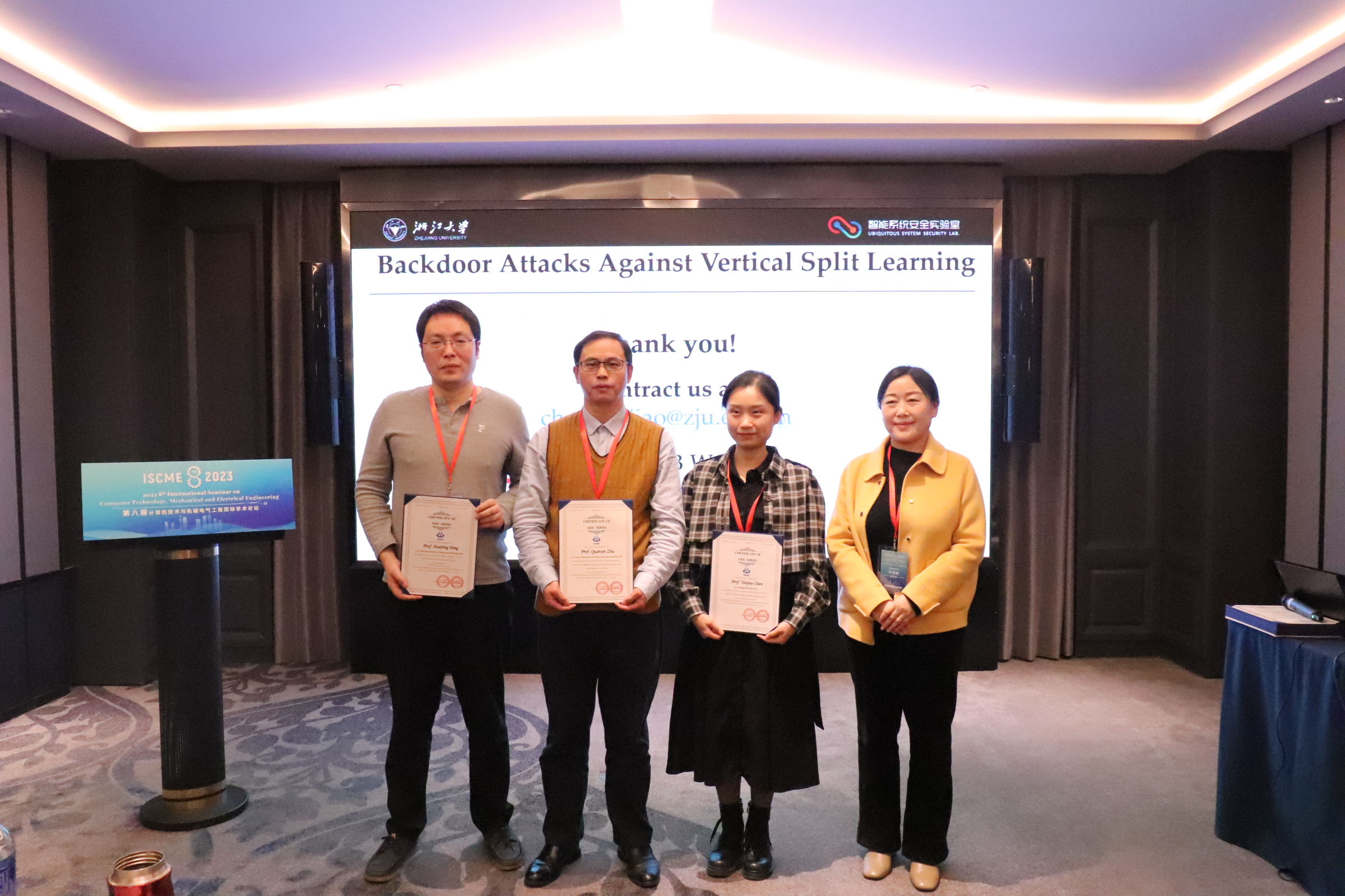 论坛结束后,许雪艳向受邀做主题报告的专家学者颁发演讲证书。本次学术论坛聚焦计算机技术、机械工程、电气工程等学科的最新研究领域,为参会者提供一个了解学术发展趋势、拓宽研究思路、扩大专业网络,面对面交流思想、展示成果的国际平台,共同探讨本领域发展所面临的关键性挑战和未来研究方向,推动相关领域理论、技术在高校和企业的发展和应用。