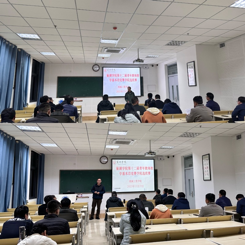 进一步加强青年教师培养,提升青年教师的教学能力和水平,不断提高课堂教学质量,1122日下午,机械工程学院在崇学楼306307教室举办校第十二届青年教师教学基本功竞赛选拔赛。本次选拔赛分两组进行,共有22名青年教师参赛,学院教学督导、系主任担任评委,全体任课教师全程观摩了比赛。