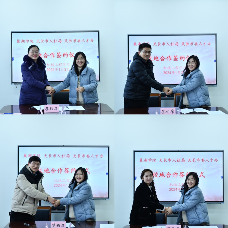 许雪艳代表机械工程学院和四家企业代表分别签订了共建实习就业基地协议。她表示,天长市就业环境优良,企业集群效应显著,是创业兴业的热土,希望未来能够进一步拓展校地企合作领域,充分发挥学校的人才资源优势,加强科技成果在企业行业的转化运用,更好地服务地方经济社会发展。