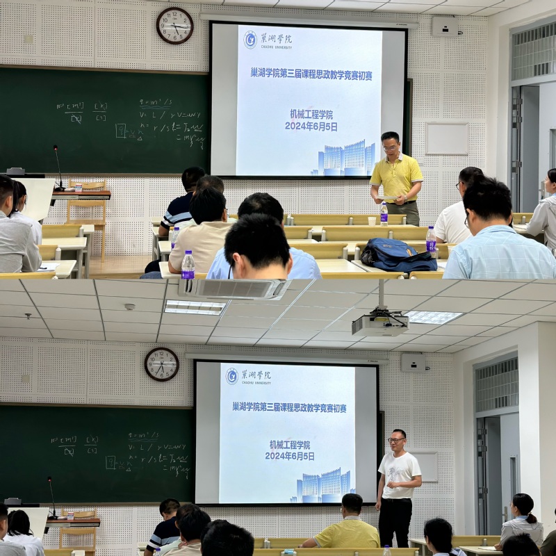 为充分发挥课堂教学育人主渠道、主阵地作用,挖掘和丰富专业课程育人内涵,持续提升教师课程思政教学能力,6月5日下午机械工程学院在崇学楼中301、302教室举办awc777万象城娱乐官网第三届课程思政教学竞赛初赛。本次竞赛分为两组同时进行,共有16名教师参加,系主任、教学督导以及资深教师担任此次评委,学院党委书记张连福、院长许雪艳亲临现场指导观摩,全体专任教师观摩竞赛。