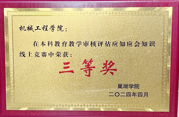 机械工程学院在学校本科教育教学审核评估应知应会知识线上竞赛中荣获三等奖。学院教师郑祥获院级一等奖,刘冬冬、董慧芳获院级二等奖,陈宇、许磊、余荣丽、邢刚获院级三等奖。校党委委员、宣传(统战)部长、学院党委书记张连福,学院院长许雪艳,学院党委副书记、纪委书记李融为学院获奖教师颁发荣誉证书。