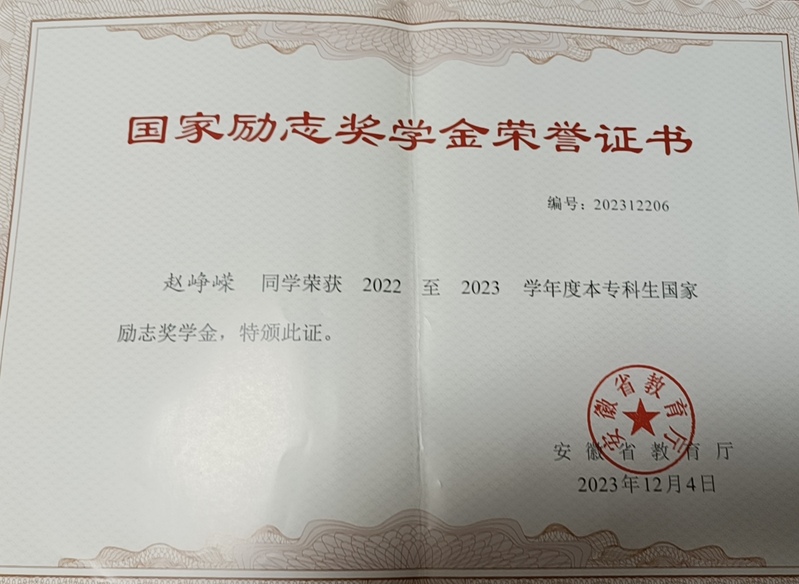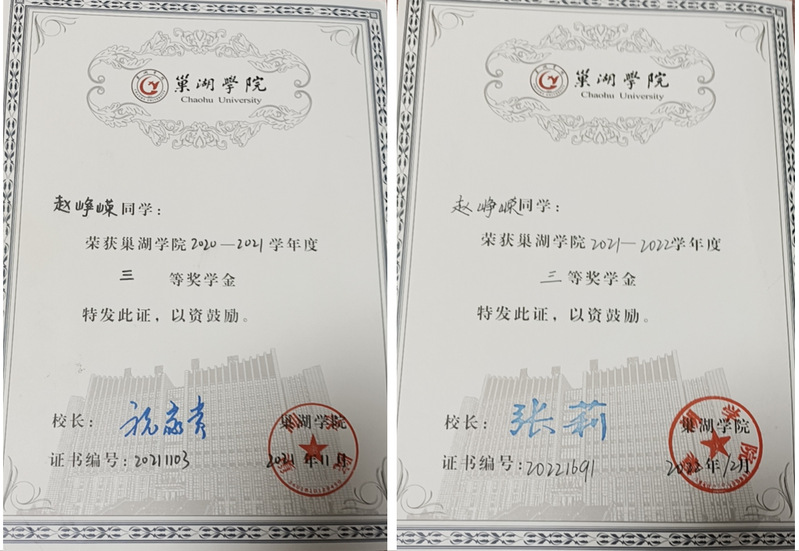 在校期间认真学习,曾获得校级三等奖学金两次,国家励志奖学金等。