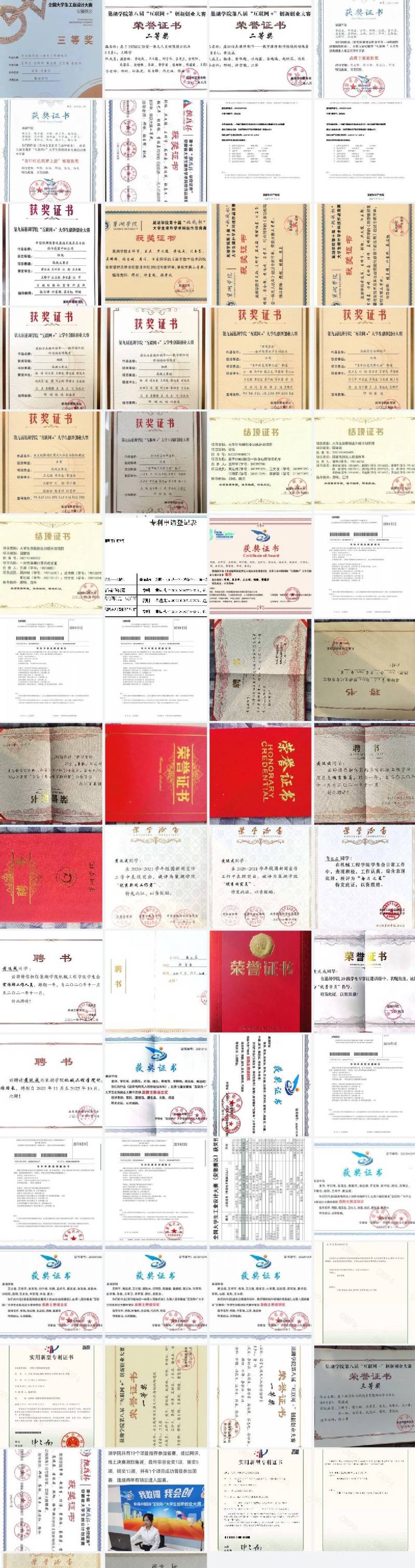 黄运成积极参加各类学科竞赛。2021年参加第七届“互联网+”全国大学生创新创业大赛中获得安徽省金奖、第八届“互联网+”大赛中获得国家级铜奖,省级金奖、银奖、铜奖各项,第九届“互联网+”大赛中获得安徽省银奖、铜奖各项;参加安徽省“挑战杯”大挑小挑获得二等奖三等奖数项;参加安徽省工业设计大赛获得三等奖等;获批实用新型专利2项;获批大学生创新创业国家级项目三项(两项已结项)省级项目两项(一项已结项);校级奖项30余项。