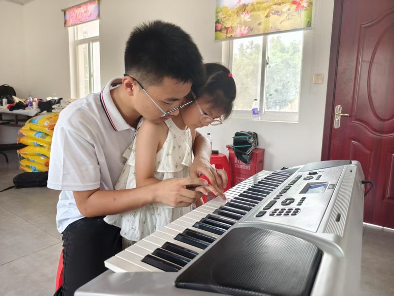 音乐课堂上,志愿者教唱歌曲《感恩的心》,童声悠扬;数独课中,以闯关游戏激发思维;绘画课里,孩子用画笔描绘乡村美好,兴趣与创造力充分释放。