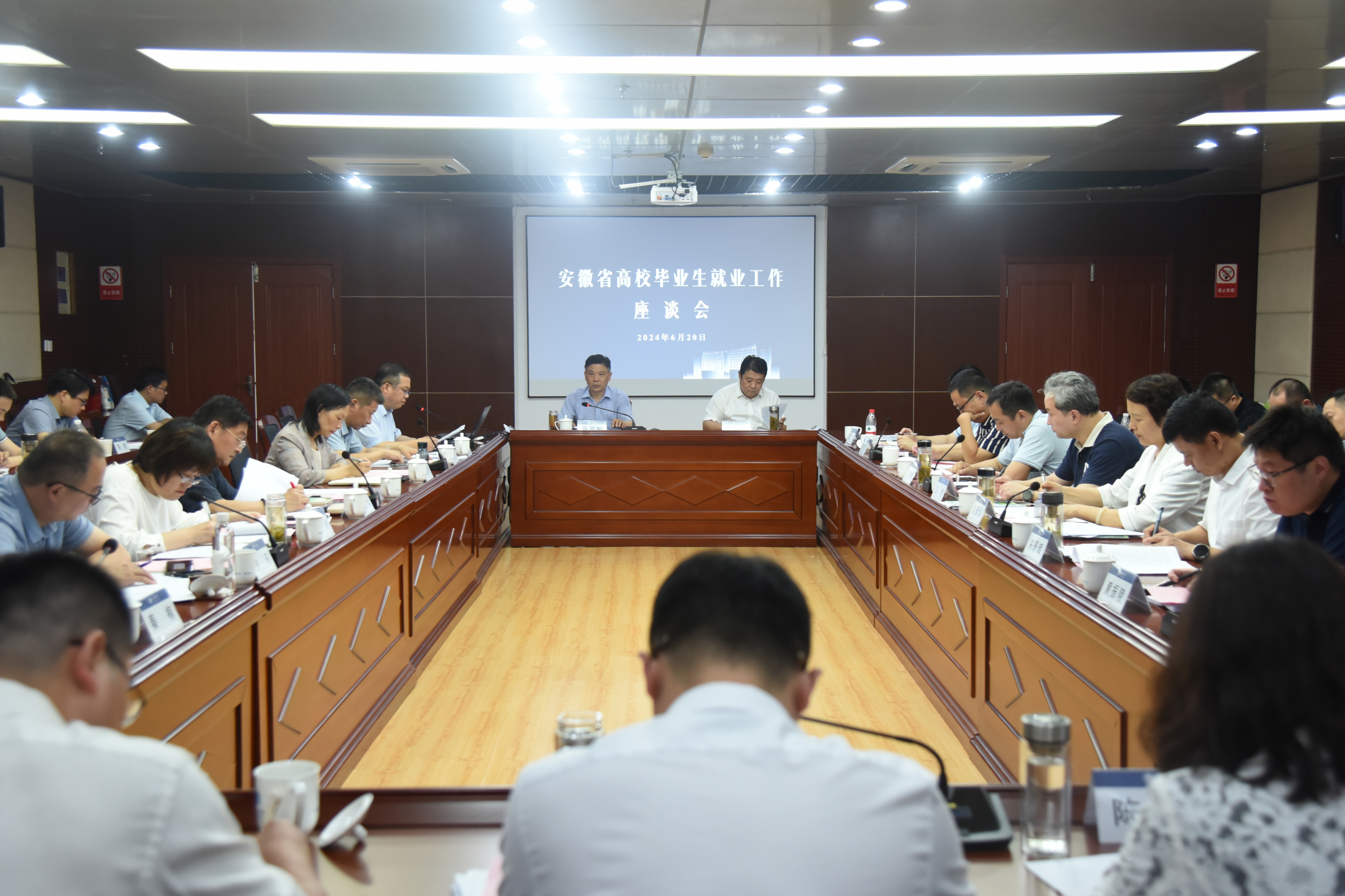 6月21日下午,省教育厅高校毕业生就业工作座谈会在我校第二会议室召开。省教育厅高校学生处处长马家松、省大中专毕业生就业指导中心主任张秋田出席会议,有关高校分管就业工作负责同志和就业工作部门主要负责同志参会。