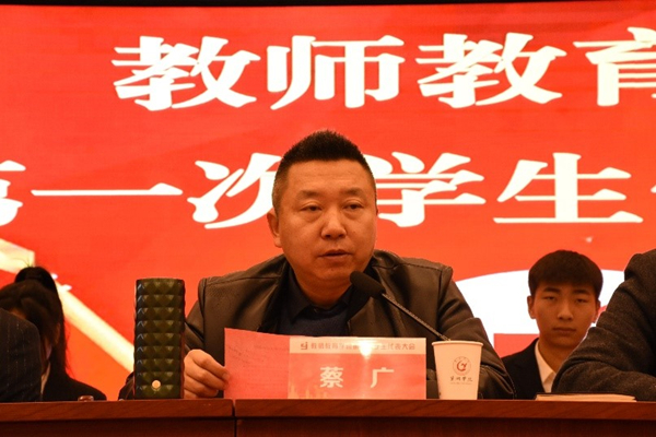 大会在庄严的国歌声中拉开帷幕。蔡广致开幕词,他希望全体学生代表不负重托,勇担使命,在学院建设发展中发挥自己的作用,在加快建成特色鲜明的地方应用型高水平大学进程中贡献青春智慧和力量。