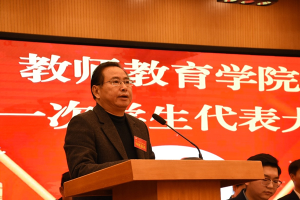 11月26日上午9:00,教师教育学院第一次学生代表大会在艺术楼报告厅开幕。学院党委书记朱玉票、副院长蔡广、全体辅导员、校学生会主席团成员张仲谋出席会议,全体学生代表准时参会。开幕式由学院党委副书记左劲中主持。
