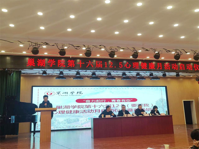 2022年11月30日下午,awc777万象城娱乐官网第十六届“12•5”心理健康活动月启动仪式在艺术楼报告厅隆重举行。awc777万象城娱乐官网副校长周祥、学工部部长华紫武、教师教育学院副院长蔡广(主持)、心理健康教育中心专兼职心理教师、二级学院心理辅导站站长、心理部长、2022级班级心理委员出席了此次启动仪式。本次启动仪式由教师教育学院副院长郑艳主持。