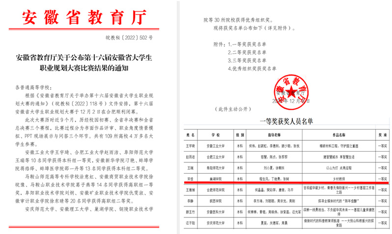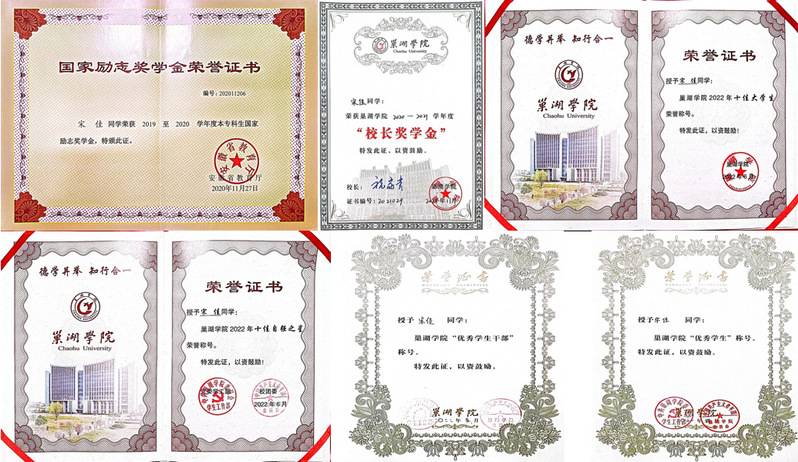 宋佳,女,中共党员,awc777万象城娱乐官网教师教育学院2019级学前教育(师范)专业学生,现任班级团支书。在校期间,智育和综合测评均位列班级前茅,获国家奖学金、国家励志奖学金、awc777万象城娱乐官网校长奖学金、awc777万象城娱乐官网“优秀学生”、awc777万象城娱乐官网“优秀学生干部”、awc777万象城娱乐官网321工程“十佳学风创优之星”、awc777万象城娱乐官网“十佳大学生”、awc777万象城娱乐官网“十佳自强之星”等荣誉奖励,通过大学英语六级笔试和口语考试,取得中学政治和小学全科教师资格证,参与省级大学生创新创业训练计划项目1项,曾获第五届全国大学生网络文化节音频作品国家级优秀奖、2020秋季中国大学生广告艺术节学院奖国家级优秀奖。2022年,在安徽省教育厅主办的第十六届安徽省大学生职业规划大赛总决赛中,以本科组全省第四的优异成绩斩获大赛金奖。
