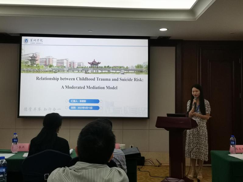 应用心理学专业教师张碧影以“Relationship between Childhood Trauma and Suicide Risk: A Moderated Mediation Model”为题进行了论文汇报。选题新颖,贴合当今青少年心理发展中的问题。