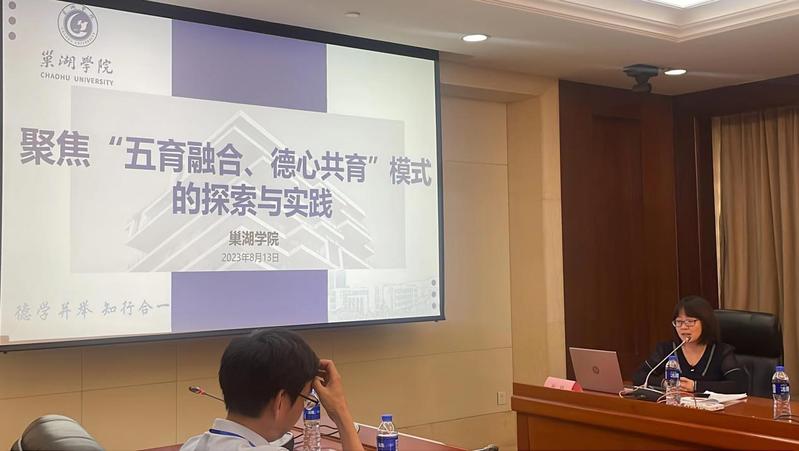 13日上午,大会分论坛在5个会场开展汇报交流环节。我校教师教育学院副院长郑艳以“聚焦‘五育融合、德心共育’模式的探索与实践”为主题,向省内同行进行工作交流。
