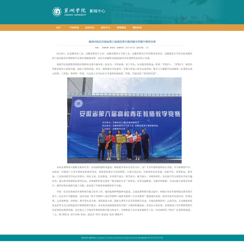 热烈祝贺我院郭华老师在安徽省第六届高校青年教师教学竞赛中荣获一等奖