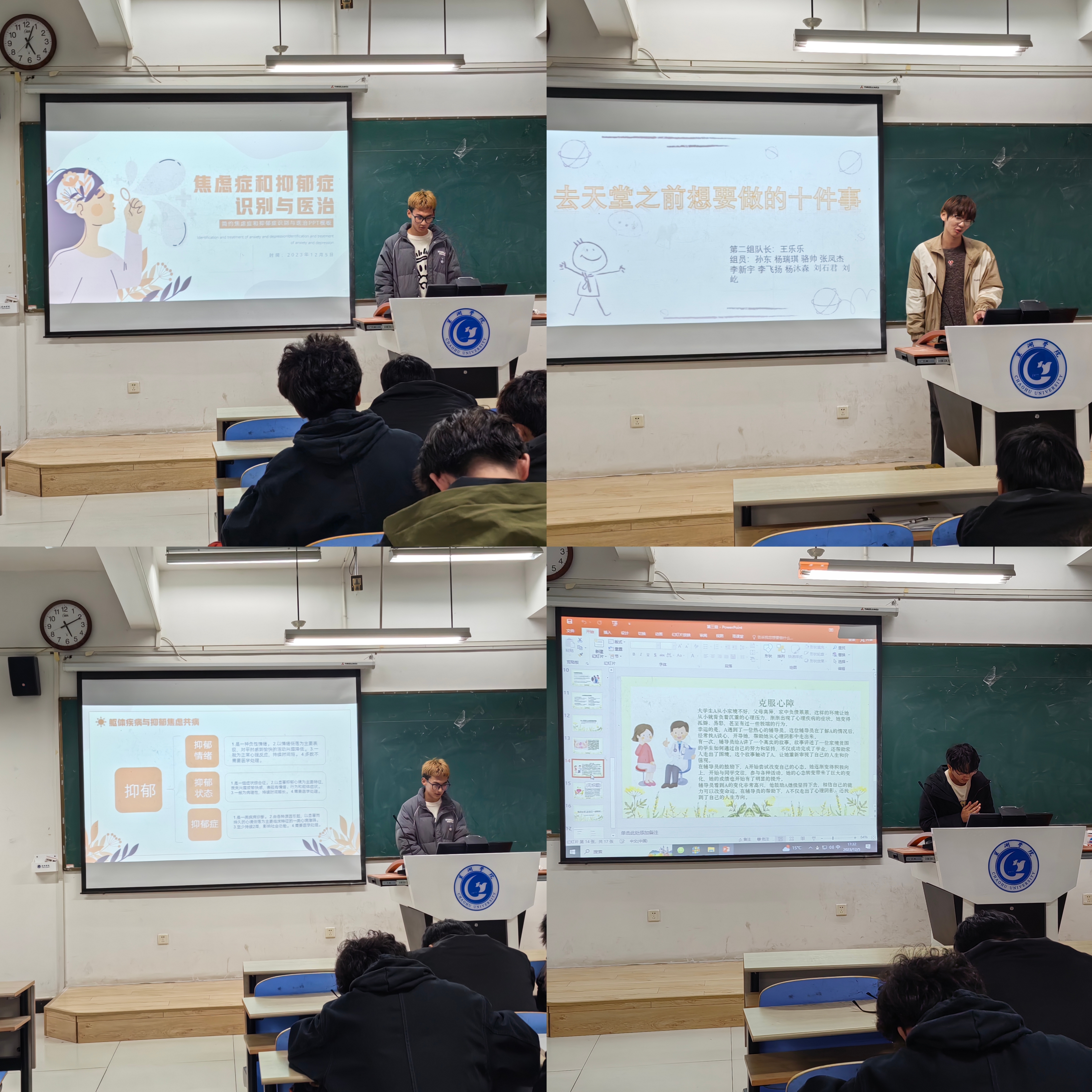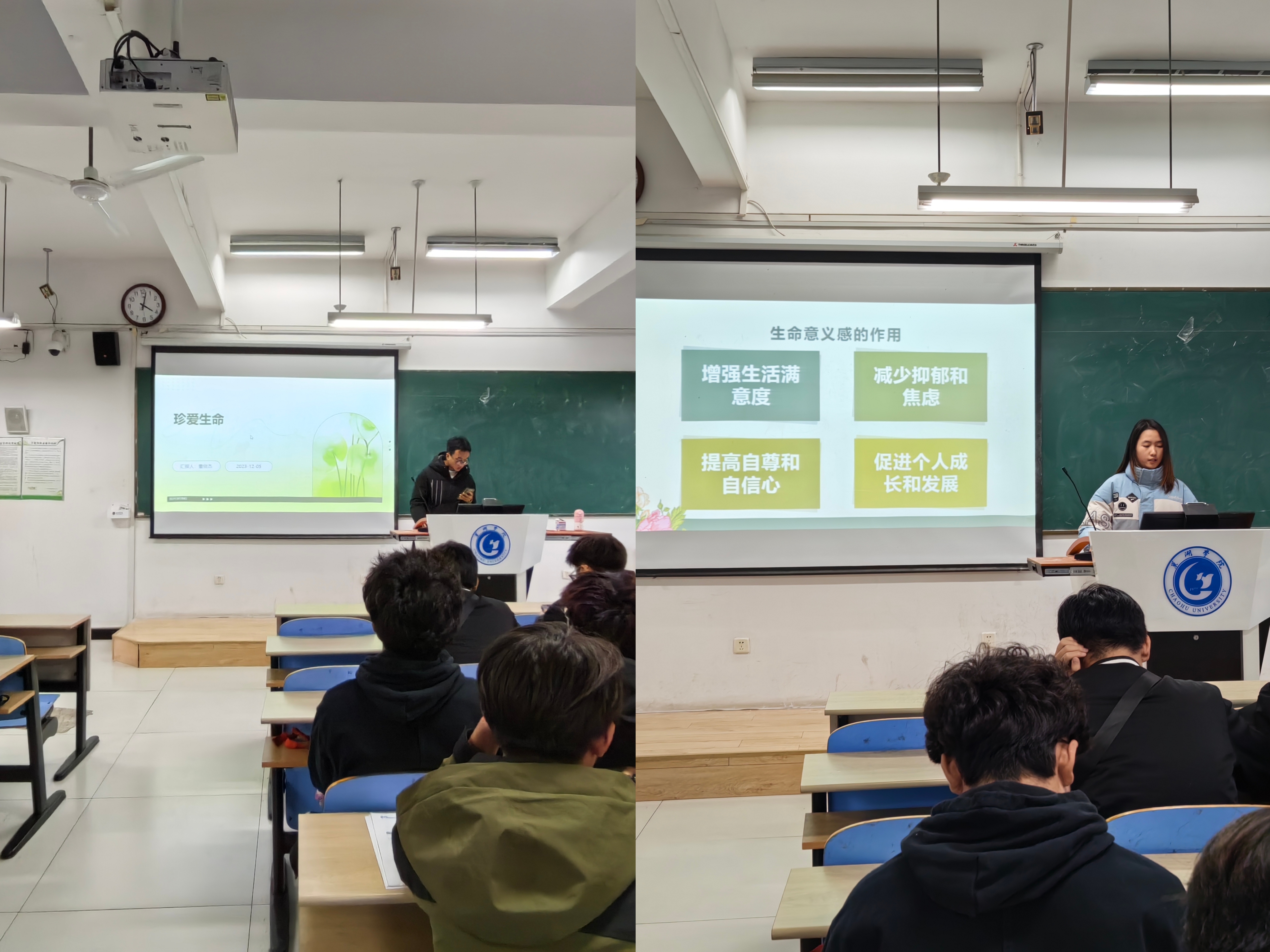 同学们围绕生命安全与危机应对,从生命的意义、认识心理危机、心理危机的应对角度开展演讲,由远及近、由大到小,逐渐聚焦到同学们个体身上。