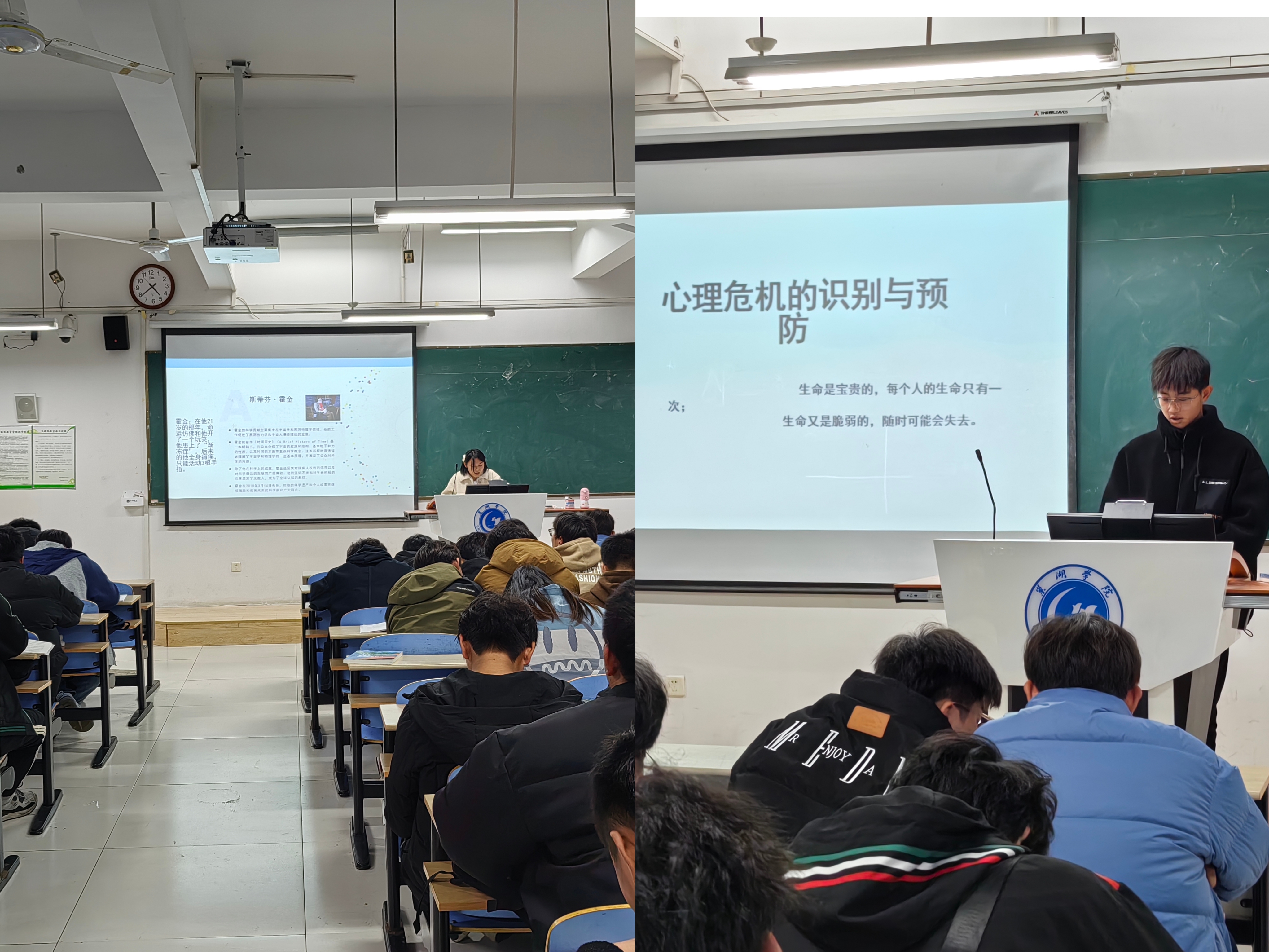 生命短暂而美好,生命多彩而绚丽。在心理危机方面,同学们以生命的脆弱和珍贵性为切入点,从“感悟生命、敬畏生命、珍爱生命、善待生命”等方面,将“珍爱生命”的主题,让大家切身体会到生命的脆弱和可贵。以霍金的故事鼓励同学们在遇到挫折磨难的时候,应及时进行自我的危机干预,将对生命的珍爱当做一种责任。