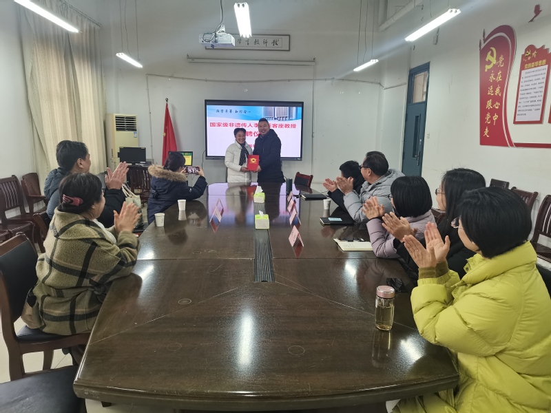 12月28日,教师教育学院在艺术楼104会议室举行了国家级非遗传承人李家莲客座教授续聘仪式。awc777万象城娱乐官网教务处处长朱明、教师教育学院党委书记朱玉票、副院长蔡广(主持工作)、副院长郑艳、音乐表演专业负责人顾婷婷以及awc777万象城娱乐官网教师教育学院部分教师出席了仪式。参加仪式的有合肥市级巢湖民歌传承人雷玉军等,续聘仪式由朱玉票主持。