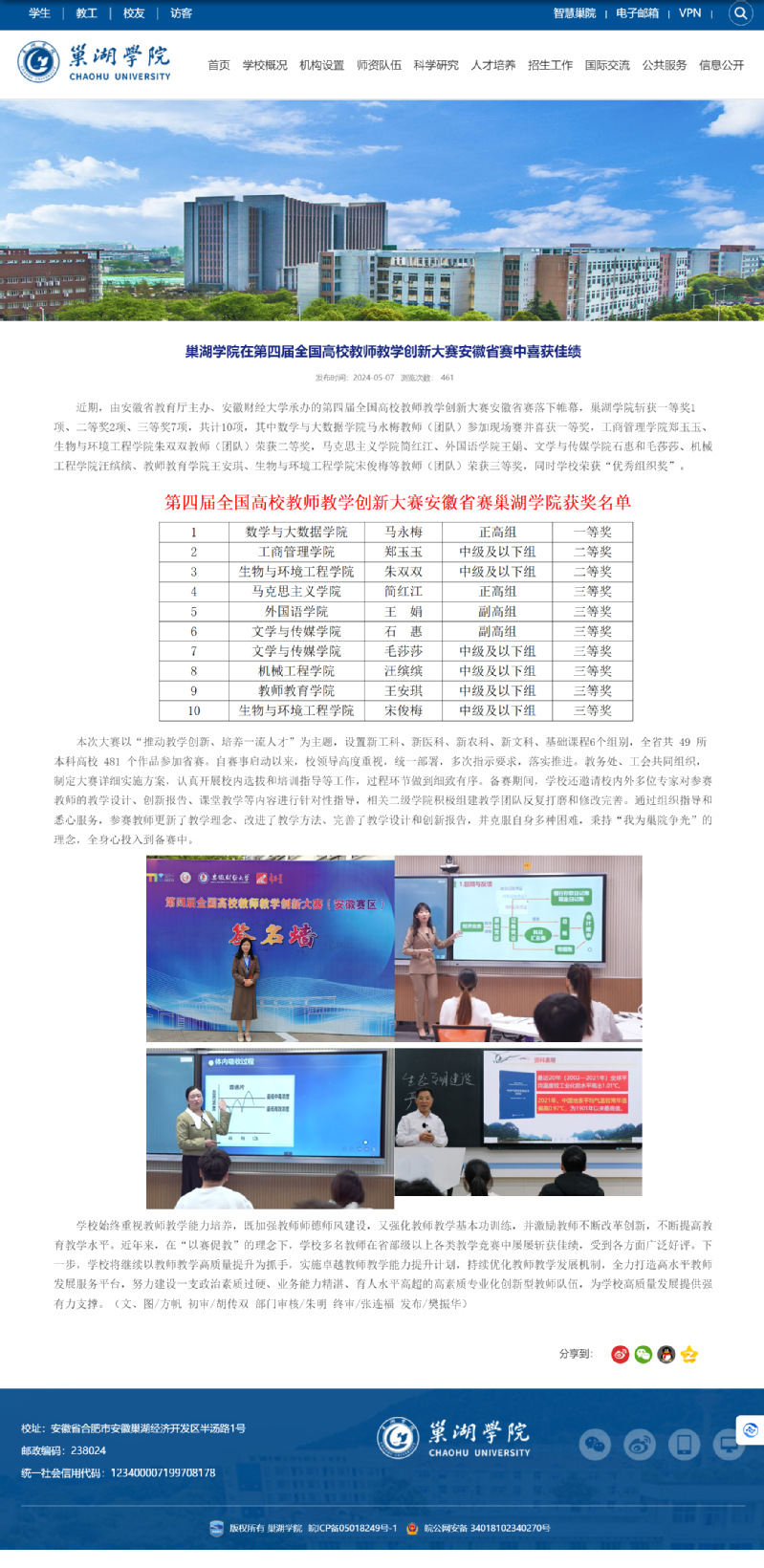 祝贺我院青年教师王安琪在第四届全国高校教师教学创新大赛安徽省赛中荣获三等奖