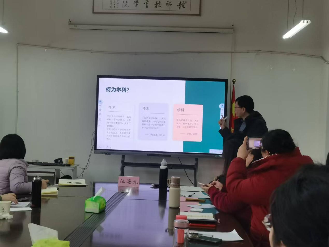 为加强学科建设,推动音乐表演专业高质量发展,12月24日,教师教育学院举办专家学术讲座与音乐表演专业建设论证会,特邀请安徽师范大学音乐学院院长汪海元教授来院作专题学术讲座与音乐表演专业建设论证指导。学院领导班子、音乐系全体教师参加报告会。会议由教师教育学院副院长(主持工作)蔡广主持。