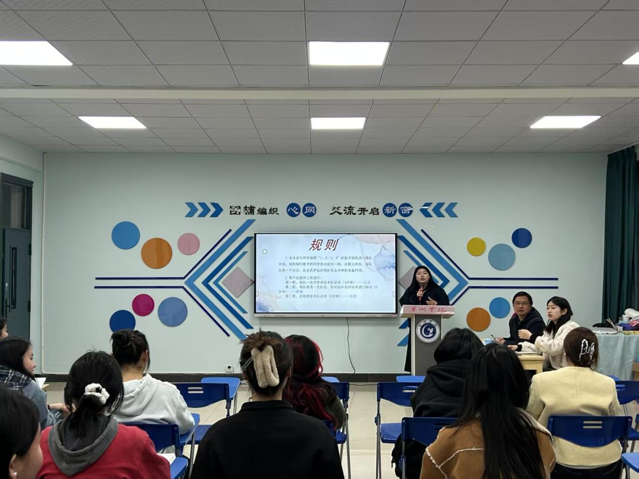 在会议的第四个环节,备受期待的辩论赛在唐培同学的带领下激烈展开。辩手们思维碰撞、智慧交锋,展现出良好的思辨能力和团队协作精神。