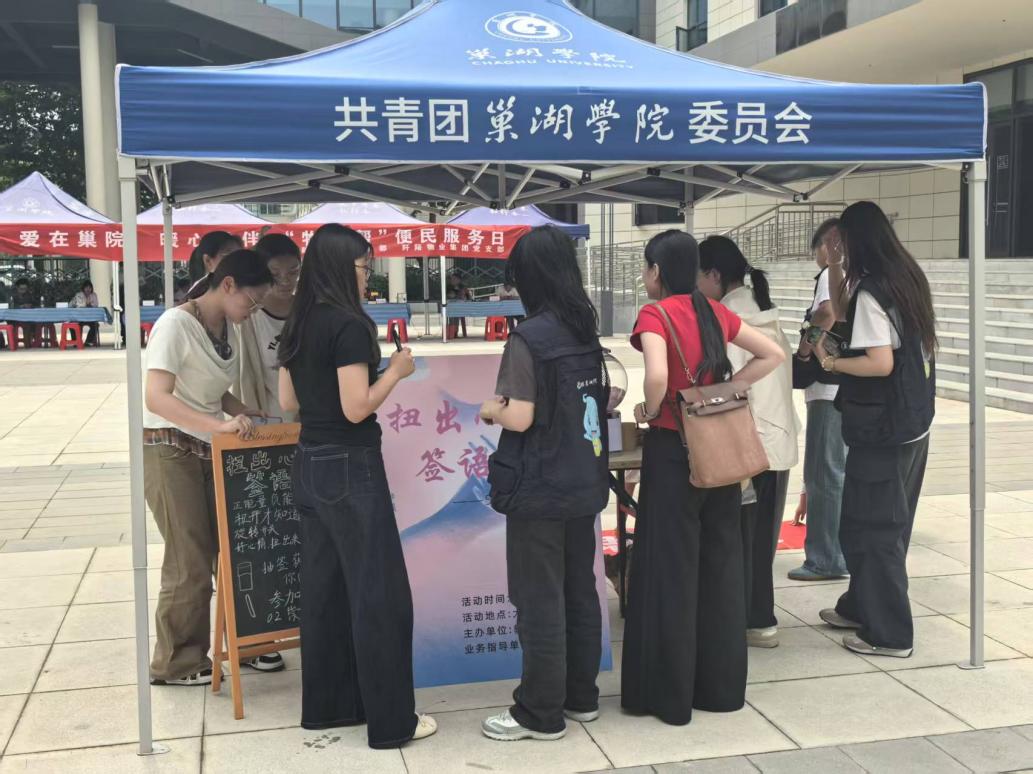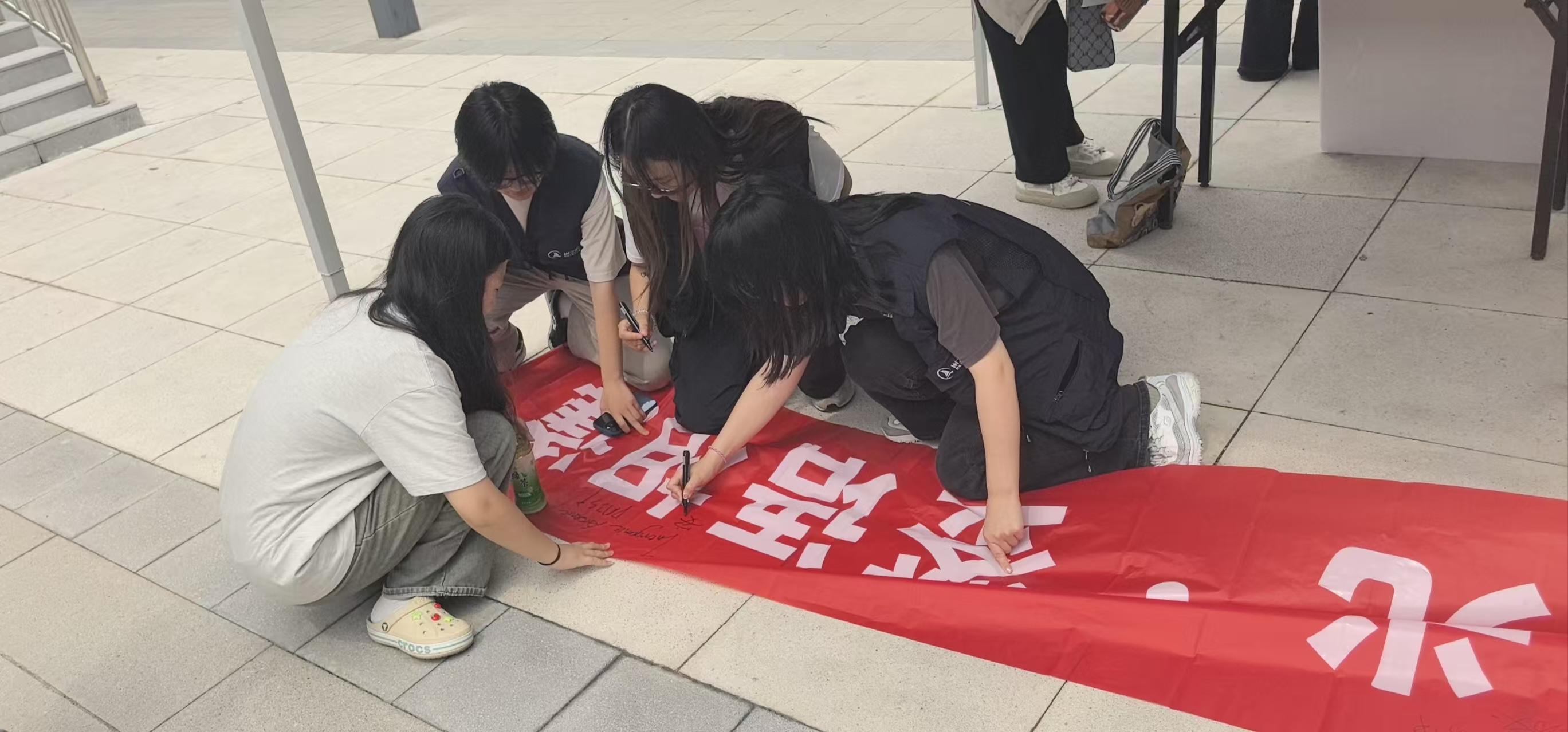 青春执笔,心迹同框。参与者在参加完以上的活动后可以在“扭出心光·签语相逢”横幅上写下自己的感受和激励自己的话。