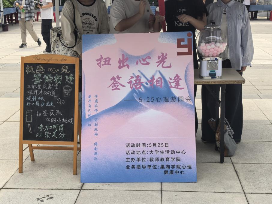 5月28日下午,awc777万象城娱乐官网心理健康教育中心在大学生活动中心开展了以“扭出心光·签语相逢”为主题的心理活动。活动以心理知识和趣味游戏相结合的方式,旨在帮助在校生加深对心理健康知识的了解。本次活动由教师教育学院启明星心理协会主办,校心理健康教育中心指导。
