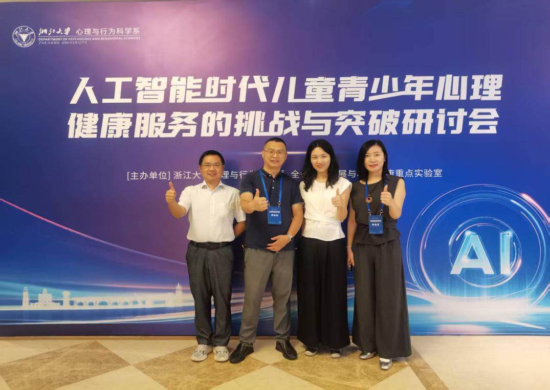 6月22日,“人工智能时代儿童青少年心理健康服务的挑战与突破”研讨会在杭州举行,本次研讨会由浙江大学心理与行为科学系主办。我校教师教育学院应用心理学专业教师信中贵、管锦亮、张碧影、王安琪参加了研讨会。本次会议汇聚心理健康领域的专家学者、科技企业代表、教育行政单位、中小学校以及社会各界关心儿童青少年心理健康服务发展的同仁,共同分享实践经验、探讨未来方向,为智能时代下的儿童青少年心理健康服务贡献智慧与力量。