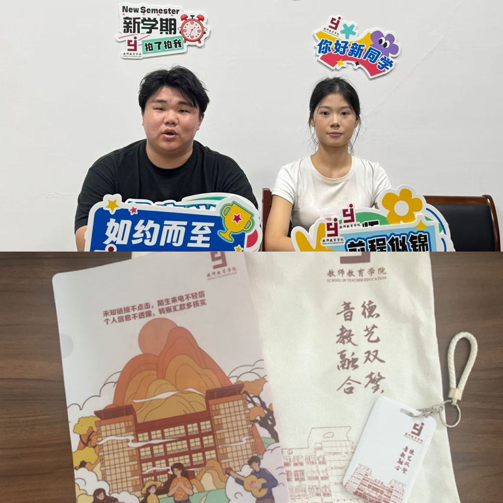 迎新工作早在线上便拉开了帷幕。9月4日下午,“很高兴‘育’见你”线上直播答疑活动准时与新生及家长见面。通过“云游学院”的形式,学长学姐们化身专业向导,带领屏幕前的“萌新”们全方位了解校园环境,提前熟悉大学生活。学院还精心设计制作了融合学院特色与育人理念的系列迎新文创产品,如学院标识帆布包、艺术卡套、反诈宣传文件夹等,于细微处彰显“音教融合,德艺双馨”的育才理念,承载着学院对新生们的美好祝愿与殷切期望。