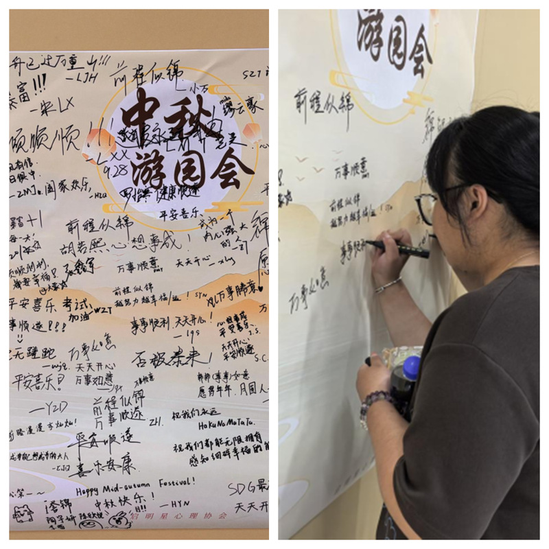 本次“月满星聚,心启新程”主题中秋游园会,是学校关注新生心理健康、助力新生融入校园的系列活动之一。未来,心理健康教育中心将继续秉持“关注心理健康,互助共同成长”的宗旨,不断创新心理健康服务模式,为学生的身心健康成长保驾护航。(文/李涵 图/董晶晶 初审/郑艳 终审/华紫武)