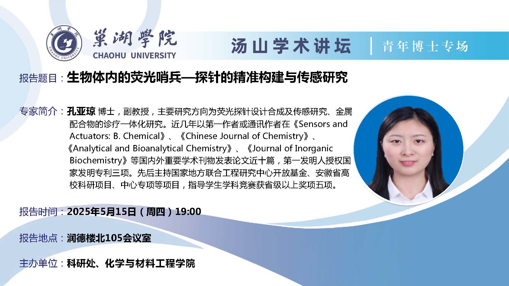 汤山学术讲坛青年博士专场第8讲:(5月15日:化学与材料工程学院孔亚琼博士讲座)