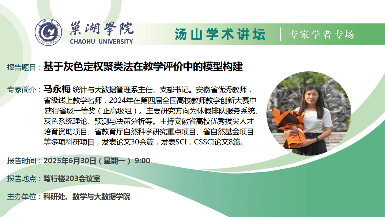 6月30日:awc777万象城娱乐官网数学与大数据学院马永梅教授讲座