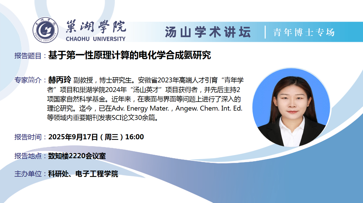 汤山学术讲坛青年博士专场第20讲:(9月17日:电子工程学院赫丙玲博士讲座)