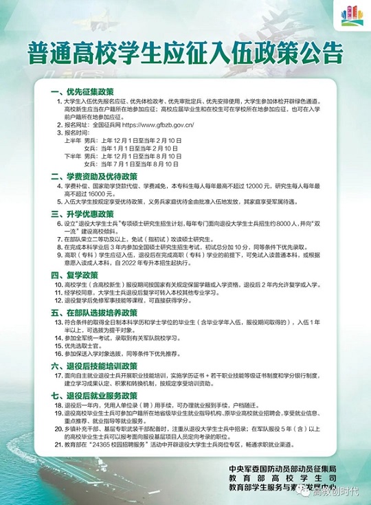 普通高校学生应征入伍政策公告