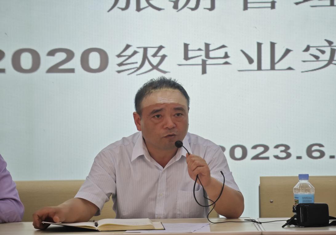 旅游管理学院党委副书记洪作奎作总结讲话。希望同学们珍惜实习机会,一要调整好心态、转换角色,努力融入企业,主动学习,不断提升自己;二要践行“四个学会”,在实习中学会爱自己、学会学习、学会做人、学会做事;三要注意安全,确保人身、财产和社交安全。